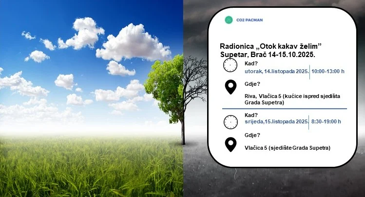 Supetar na otoku Braču 14. i 15. listopada 2025. postaje središte inovacija i klimatske neutralnosti kroz međunarodni projekt CO₂ PACMAN “Otok kakav bih volio”.